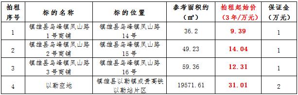 受相關(guān)產(chǎn)權(quán)人委托,公開(kāi)拍租鎮(zhèn)雄縣國(guó)有資產(chǎn)使用權(quán)。拍租遵循公開(kāi)、公平、公正、誠(chéng)實(shí)信用、價(jià)高者得的原則?,F(xiàn)將有關(guān)事項(xiàng)公告如下: