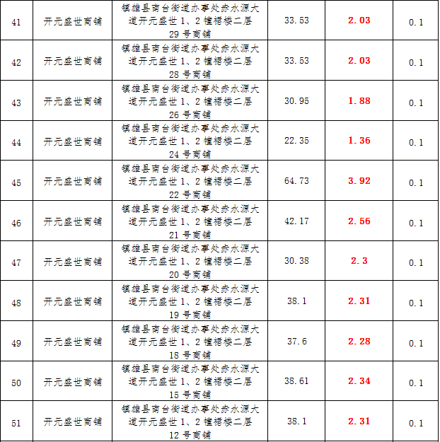 (三)拍租鎮(zhèn)雄縣城市運(yùn)營(yíng)管理有限公司國(guó)有門(mén)面3年期使用權(quán),詳見(jiàn)下表: