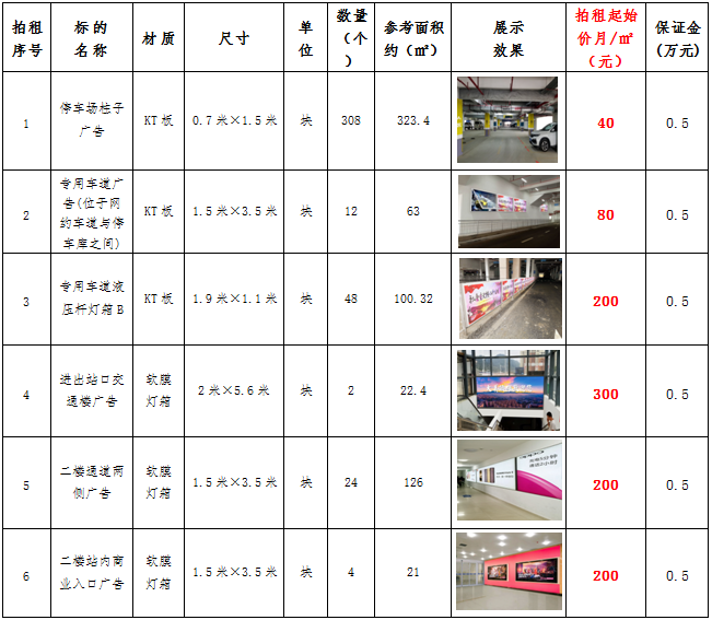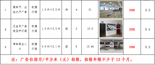 (六)拍租鎮(zhèn)雄縣開(kāi)元商業(yè)物業(yè)服務(wù)有限公司以勒高鐵站站前廣場(chǎng)各類(lèi)廣告位使用權(quán),廣告位分布、類(lèi)型、規(guī)格及展示效果如下: